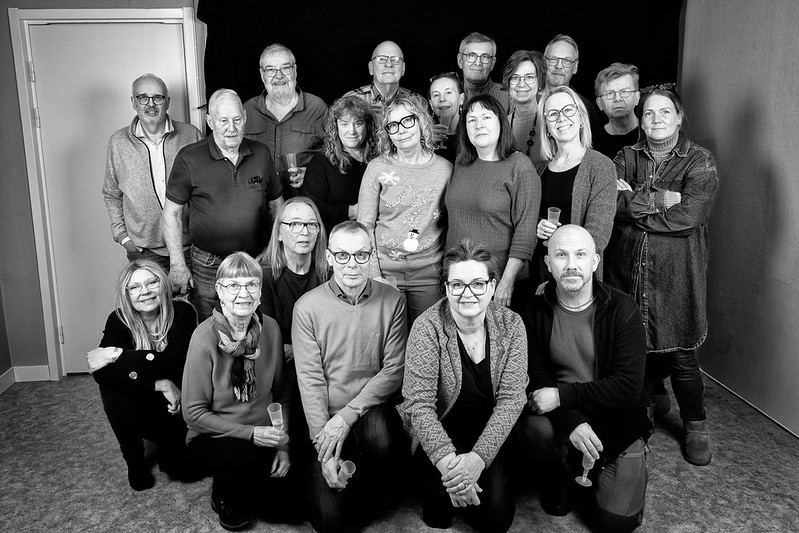 Årets sista träff där vi var 20 medlemmar samlade blev en mycket trevlig dag. Vi började med att inviga vår nya studio, ordförande Tina höll ett fint tal och Kenneth klippte bandet. Janne fixade ljussättning och Katarina gav oss info kring lokalen och hur det är tänkt. Mer info kommer till de medlemmar som vill vara med och använda studion. Vi ville förstås föreviga dagen med en gruppbild, vilket var en utmaning eftersom vi var så många, men vi fick plats allihop 🙂 Lite fika med glögg och pepparkakor och en rafflande omröstning om vad vår studio skulle heta avslutade dagen. Invigningen av ”PhotoArt” är nu klar och detta var vår sista aktivitet för 2025. Vi tackar alla medlemmar för det gångna året och önskar en riktigt God Jul 🌲